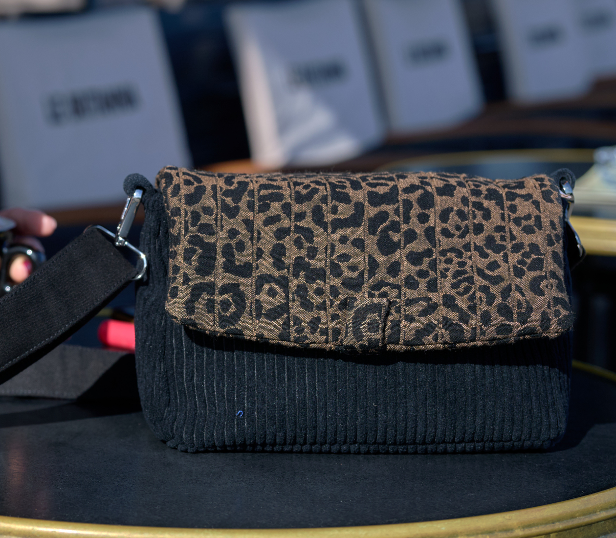 Adoptez le chic absolu avec notre collection exclusive en velours côtelé large noir, une matière emblématique qui révèle toute sa modernité dans cette teinte intemporelle. Ce noir profond, rehaussé par les côtes généreuses du velours, crée un jeu graphique saisissant qui structure vos accessoires avec une élégance naturelle.