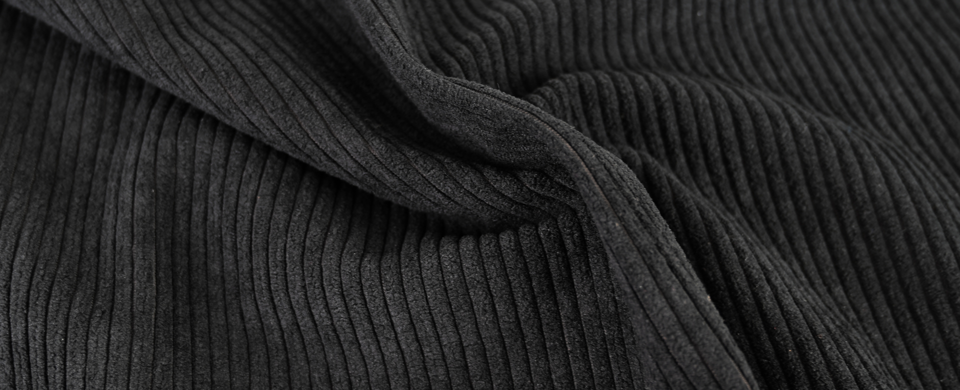 Le velours côtelé large exprime sa personnalité dans cette version XXL des côtes classiques. Ces lignes marquées créent un relief sculptural unique qui capte la lumière avec intensité, donnant au noir une profondeur et un caractère exceptionnels.
