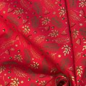 Coupon tissu 1 m ex2557 noel mini feuillage houx or rouge