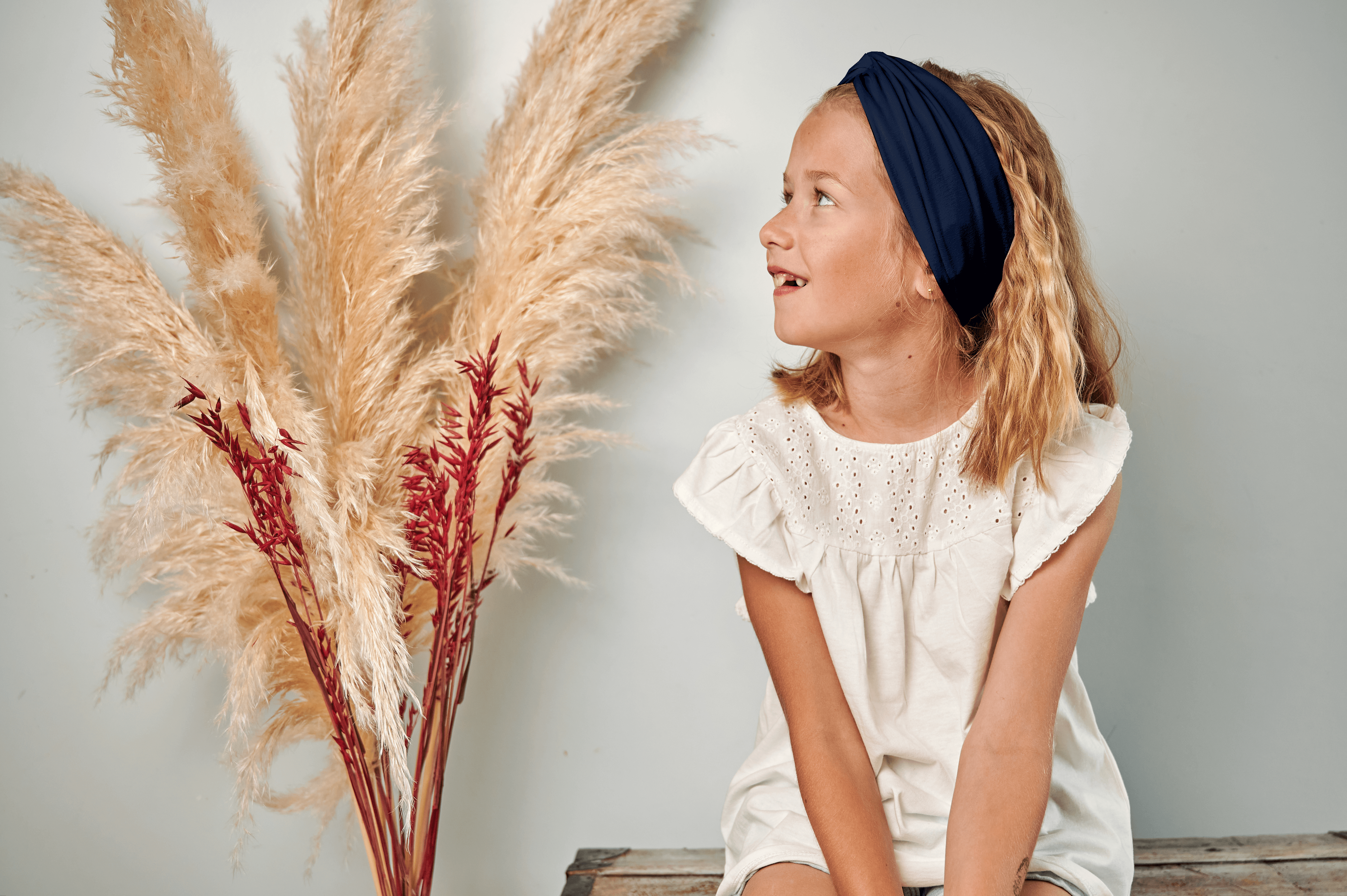 Un bandeau croisé en jersey avec la forme d’un croisé sur le devant et un nœud derrière, afin de parfaire les looks.
