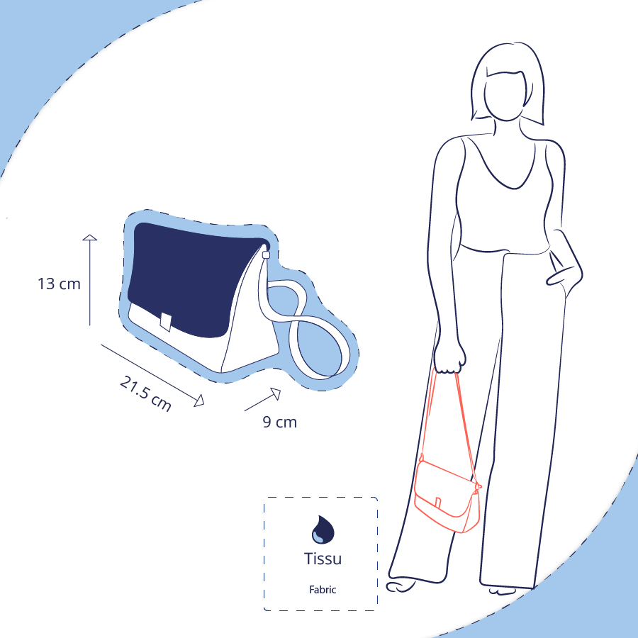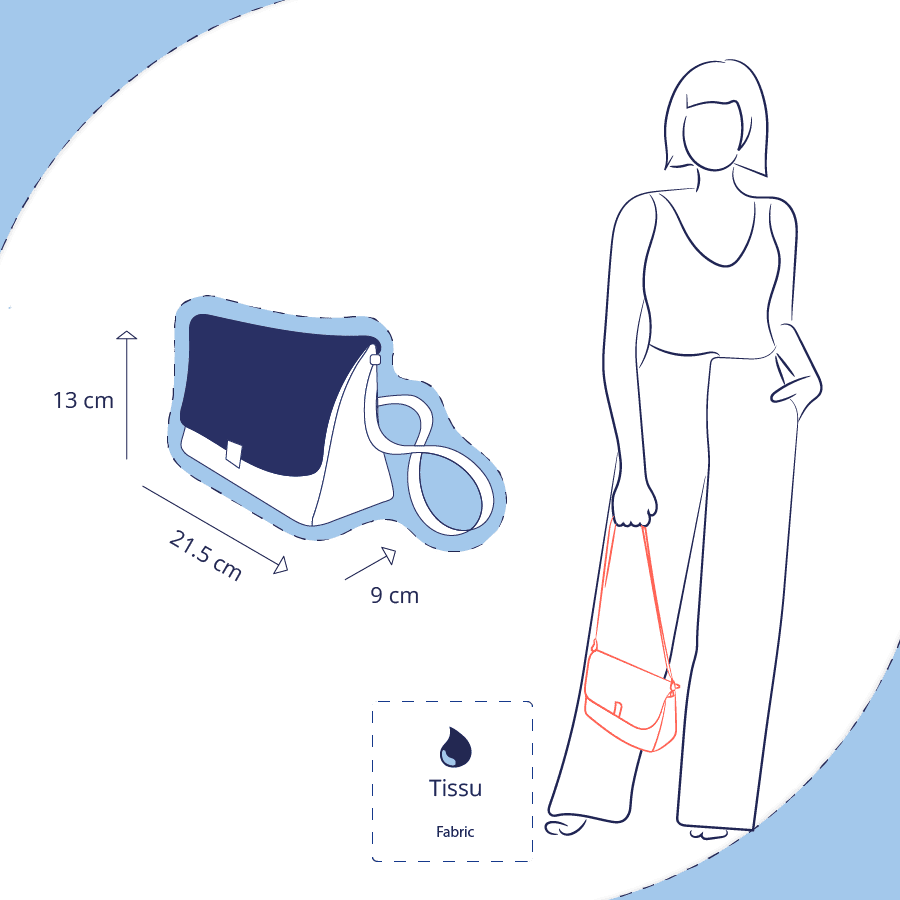 Dans le sac compagnon de la gamme Sac&Zip, on peut glisser un porte-monnaie, un mini pochette en tissu, un porte badge, ainsi qu'un étui à lunettes ou un éventail.