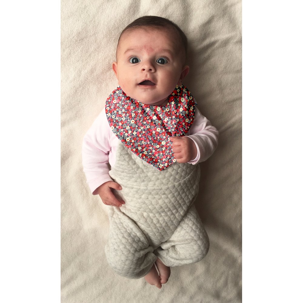 Comme notre bavoir bébé, le modèle bandana est idéal pour absorber les régurgitations et les excès de bave. Il accompagnera votre petit dès sa naissance et jusqu’à ses 6 mois. Il vous permet de protéger les vêtements de votre enfant sans les cacher comme un vrai petit bandana. Il est ainsi complémentaire avec le bavoir classique en tissu et éponge, plus adapté pour les repas.