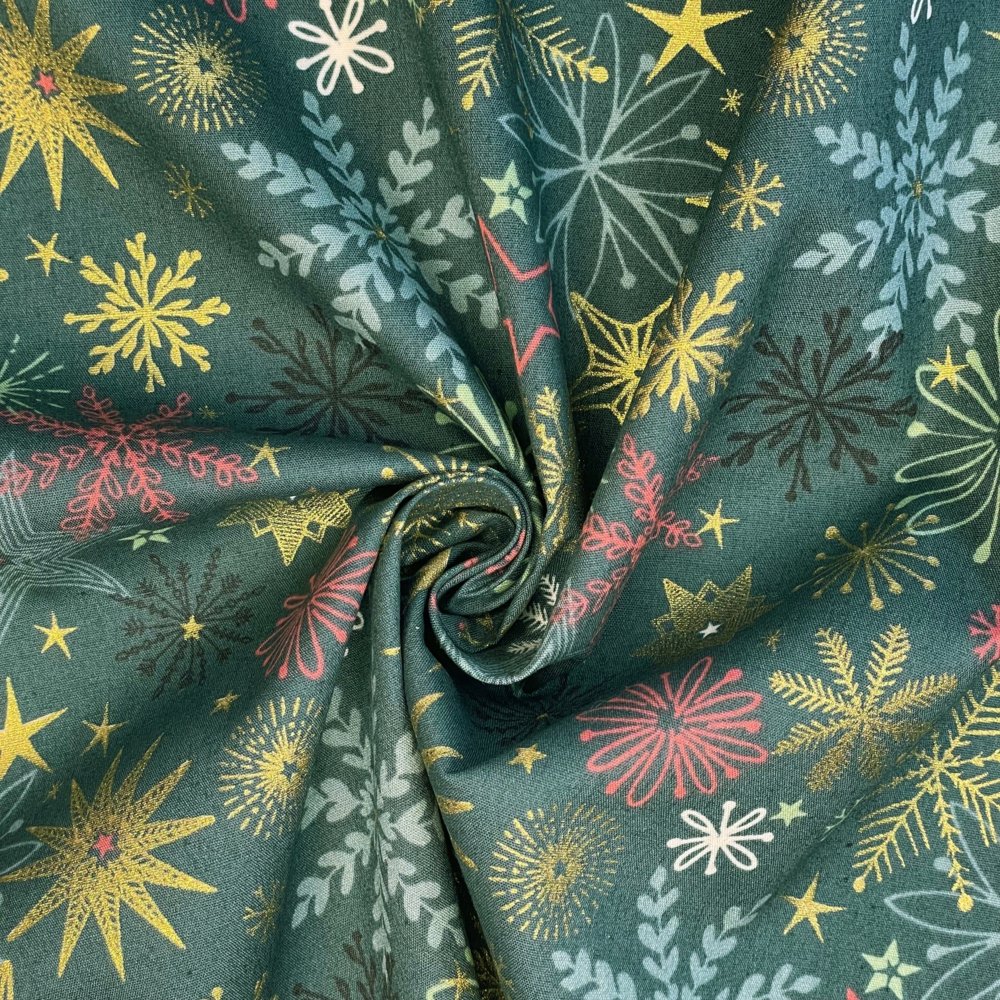 Coupon Tissu 1 M Ex2556 Noel Étoile De Noel Or Vert Bleu
