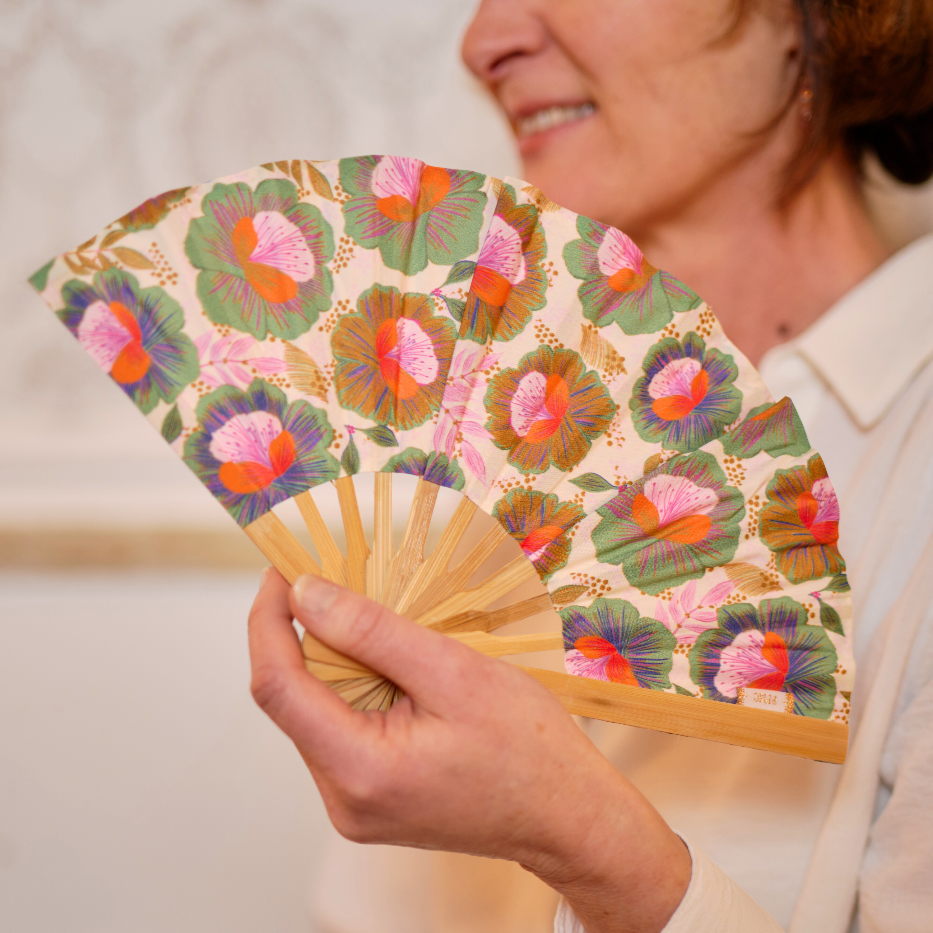 En tissu et bambou, votre éventail est un accessoire fragile ! Veillez à le plier lorsque vous le rangez dans votre sac.