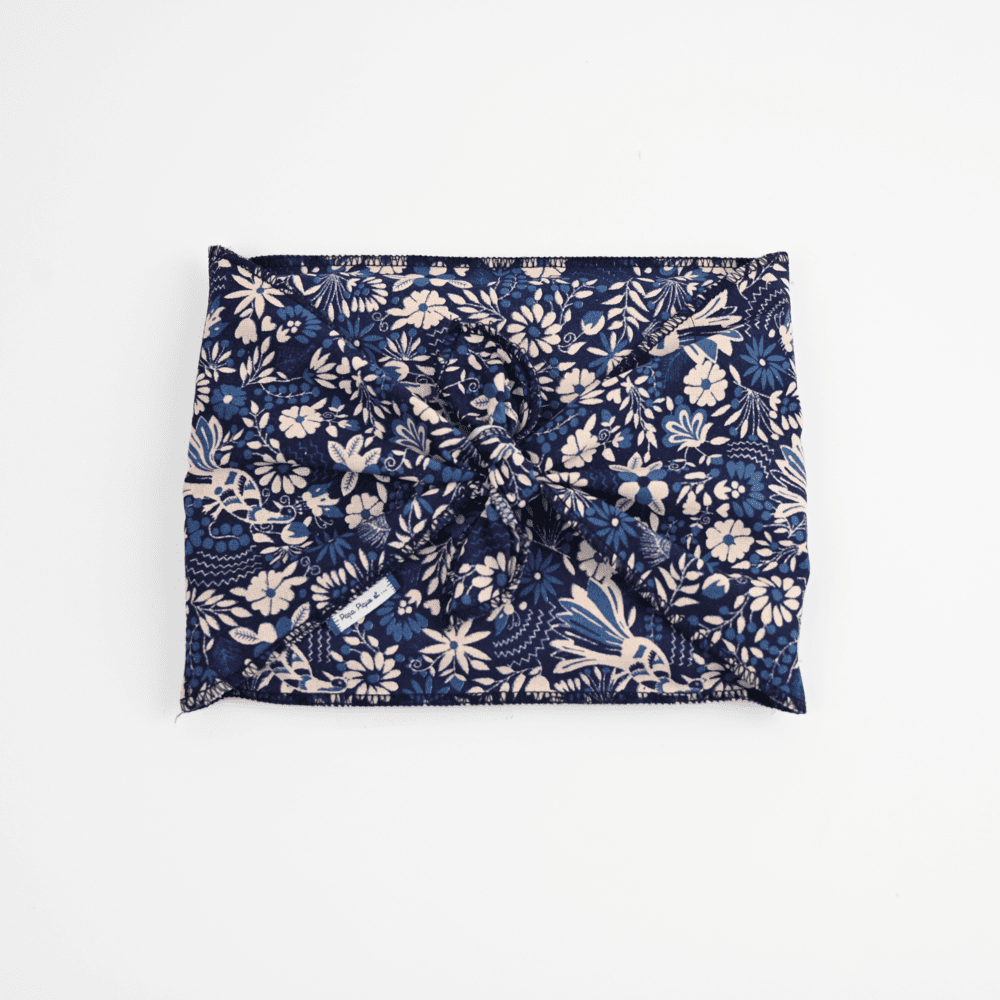 Offrez vos cadeaux autrement avec le fuPOCHiki® M : une pochette cadeau en tissu durable, réutilisable et facile à nouer.
