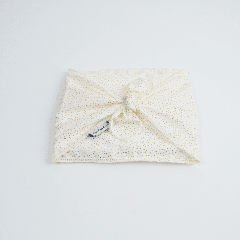 alternative esthétique et écologique au papier cadeau jetable. Conçue en coton, elle allie praticité, durabilité et élégance, tout en mettant vos attentions en valeur.