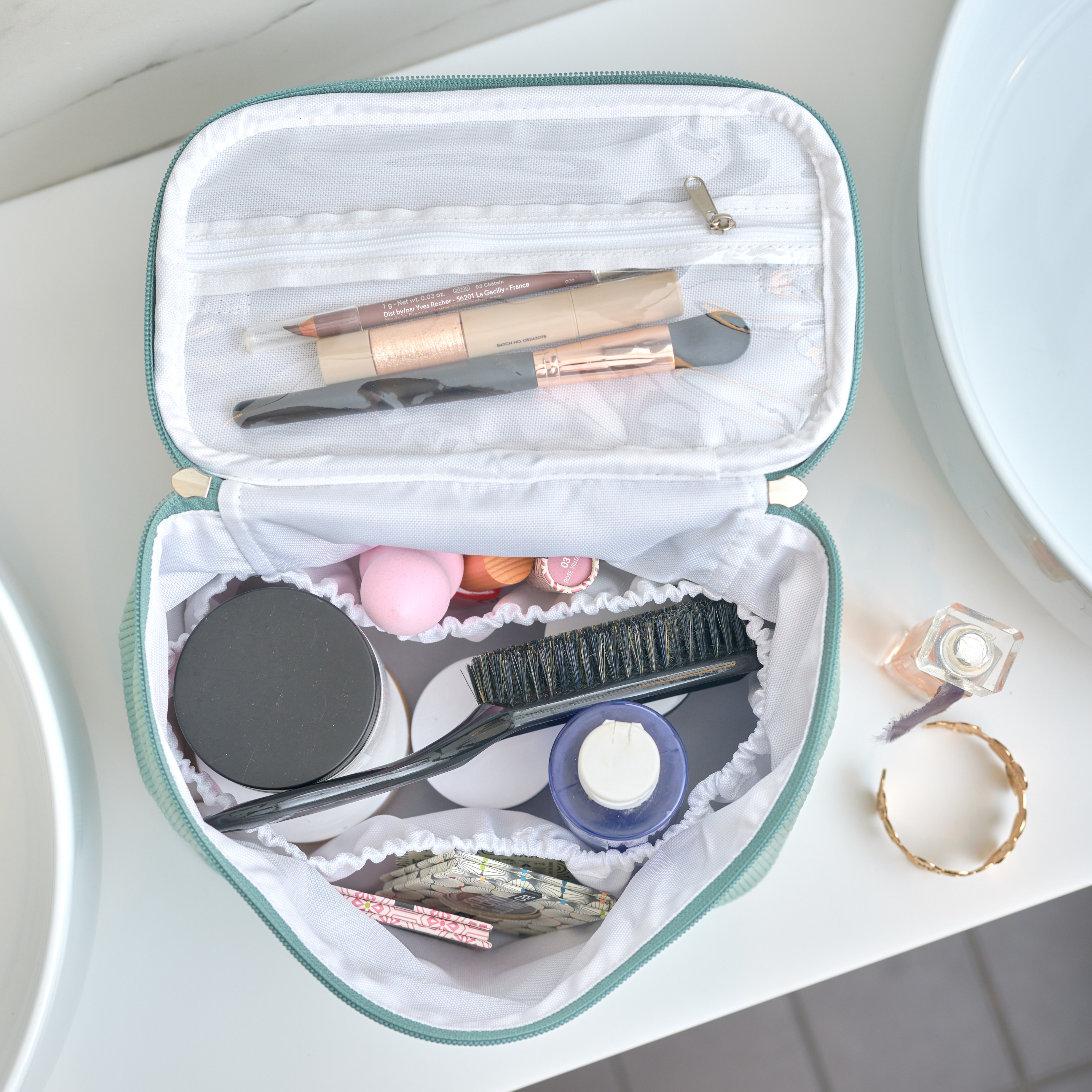 - Compartiments multiples pour séparer les produits (liquides, maquillage, bijoux, médicaments, etc.)