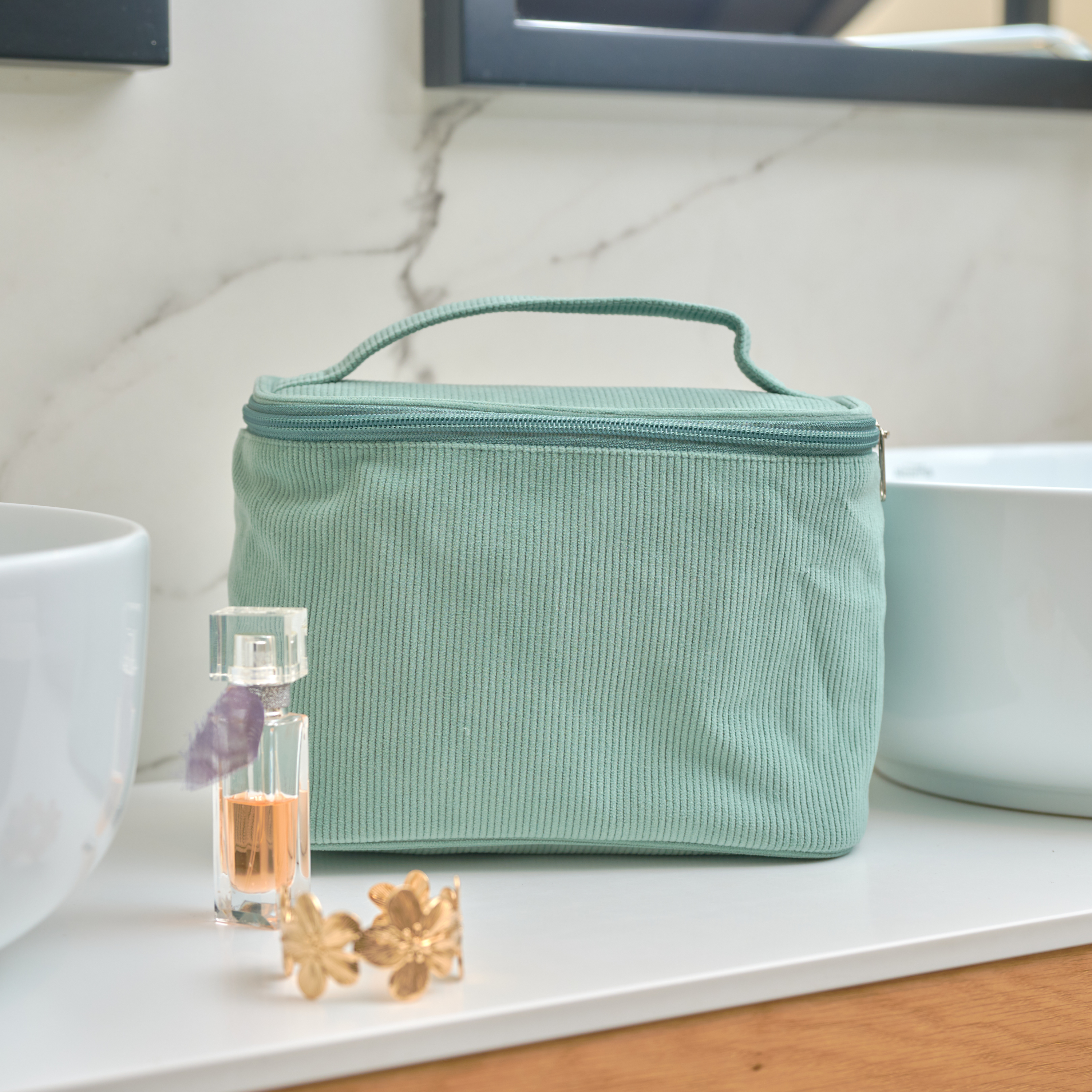 Pratique et nomade, ce vanity de voyage possède une poignée de transport pour le glisser facilement dans une valise ou un sac week-end. Il est léger, souple et facile à nettoyer, ce qui en fait un compagnon idéal du quotidien. Compact, il se range sans encombrer le placard de la salle de bain.